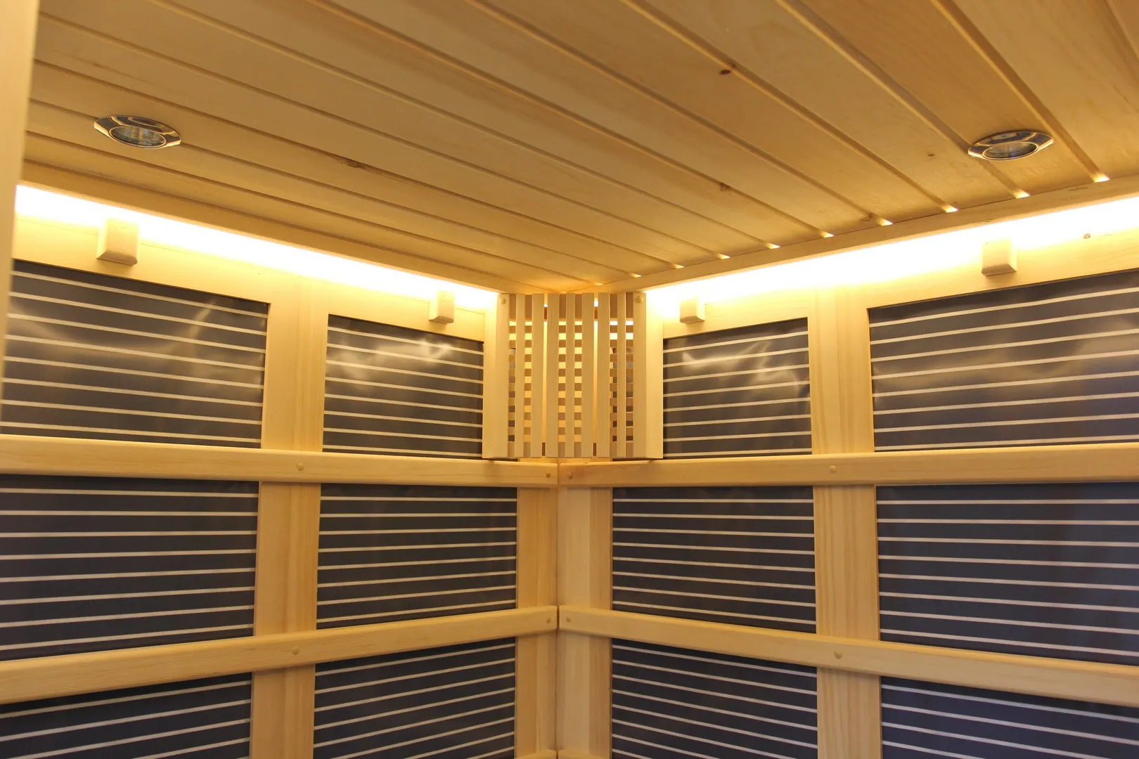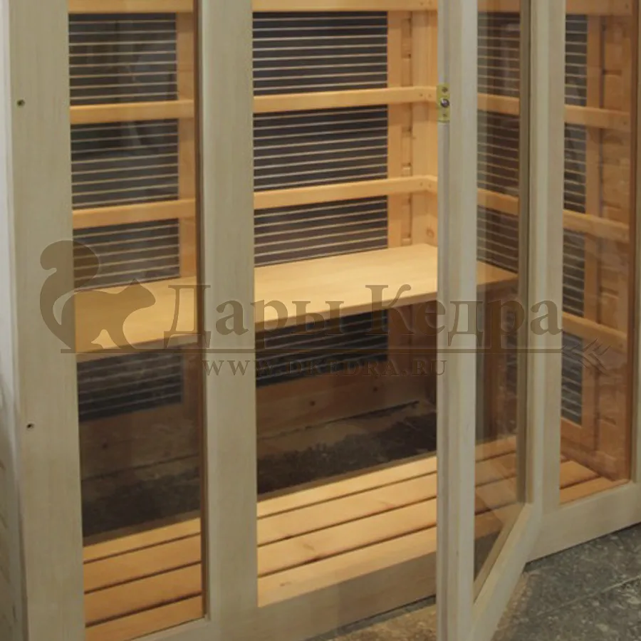 Это специально оборудованная кедровая кабина для прогрева тела человека сухим теплом. Воздух в таких парных не нагревается. Инфракрасные лучи воздействуют на тело, равномерно прогревая мышцы, суставы и органы. Карбоновые излучатели, встроенные в стены кабины, обладают мягким прогревом, что полностью исключает возможность ожога. Работает кабина за счет электричества. Инфракрасная сауна с карбоновыми излучателями подойдет как для домашнего использования, так и для коммерции.