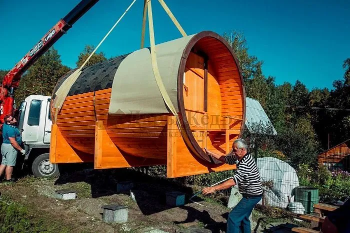 Доставка и установка бани-бочки «Буханки»